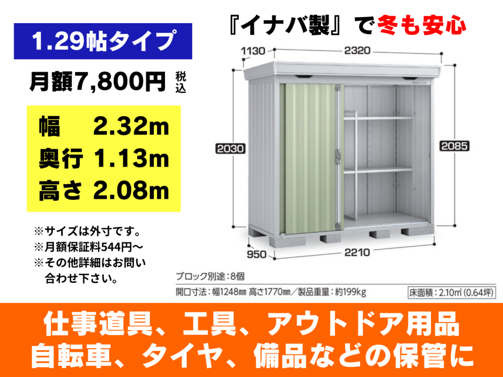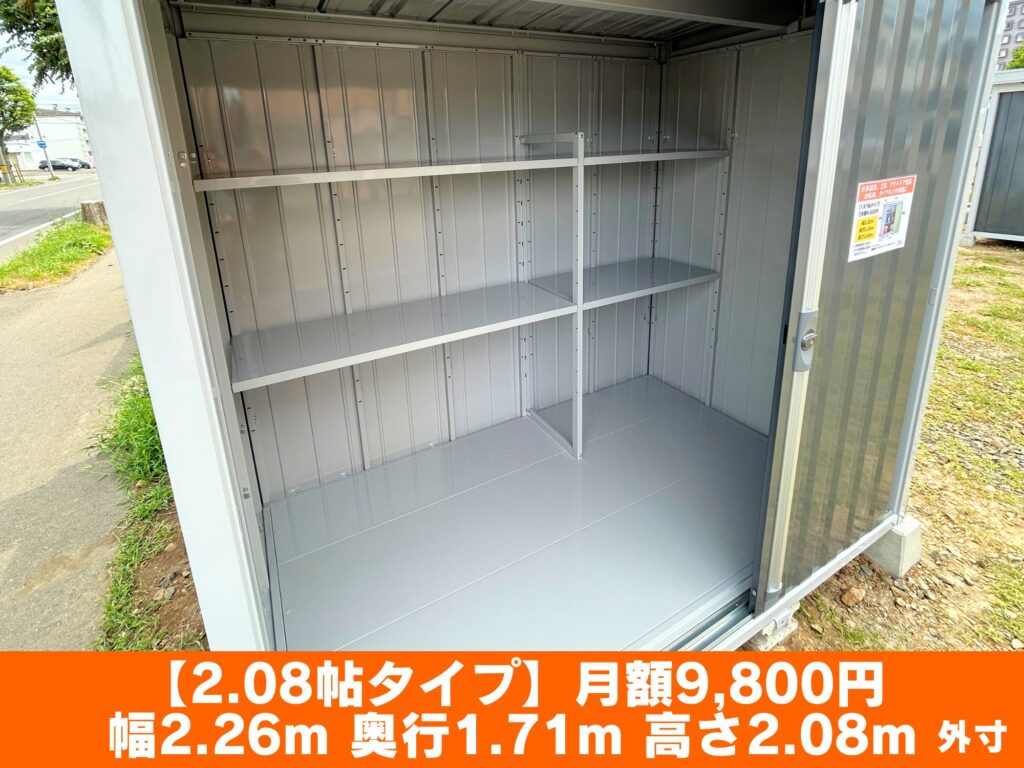 24時間365日利用可能、駐車場、棚付き完全個室、簡易除排雪実施